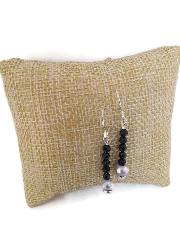 These beautiful and chic Black Spinel and Pearl Gemstone Bead Earrings are just right to add to your wardrobe. They're handmade with Fresh Water Cultured Pearls and Black Spinel Gemstone Beads. Most people know about Pearls, but you may be wondering---What is Black Spinel? Black Spinel is a natural, untreated gemstone that is often compared to Black Diamonds. They add extra sparkle and shine to these stylish earrings.