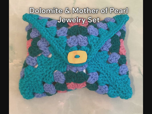 The necklace and earrings come in a separate gift box with a gold gift tie. In addition, the gift boxes are enclosed in a handmade granny square gift pouch. This gift set comes to you ready to present!