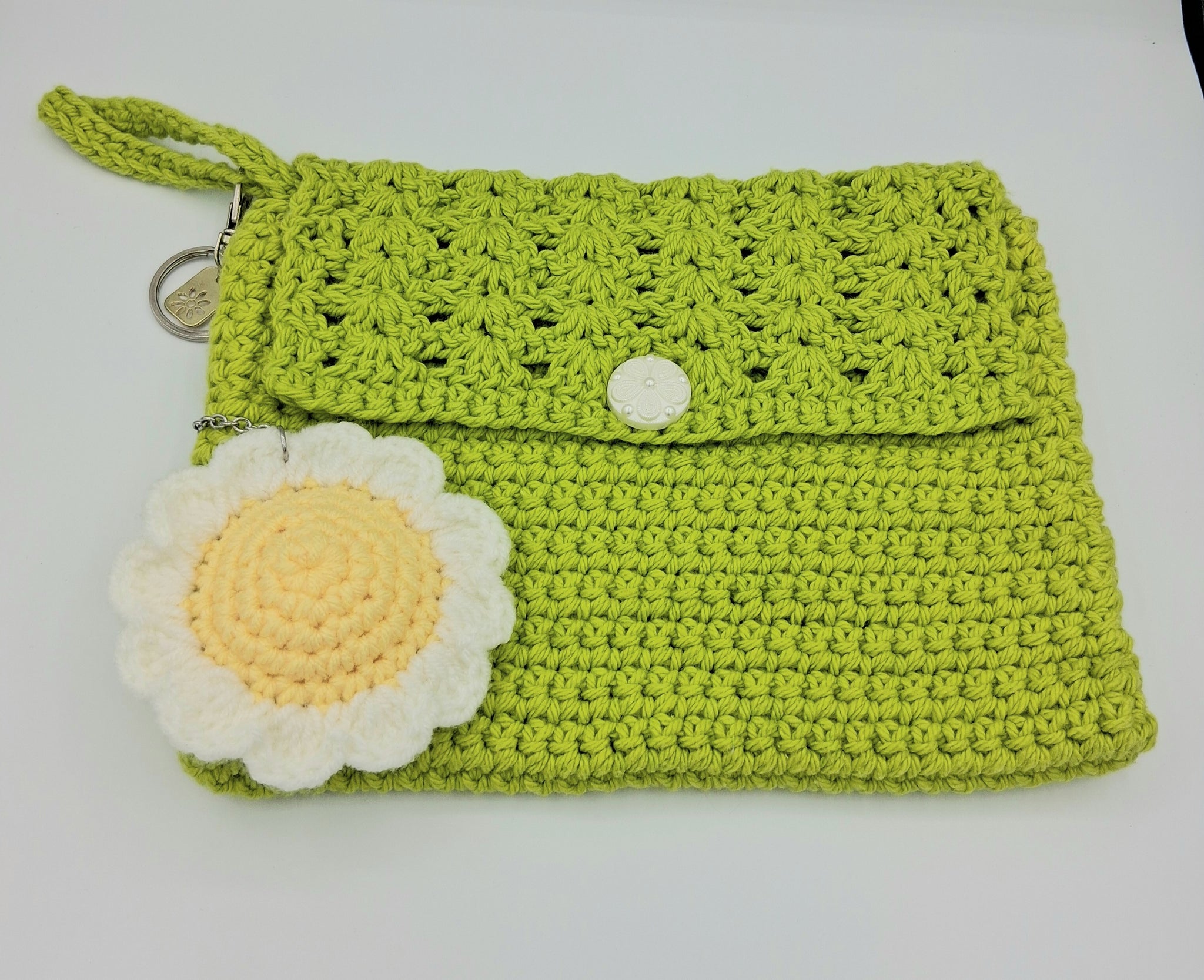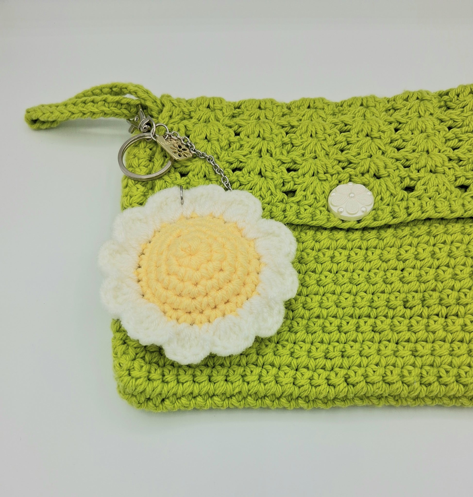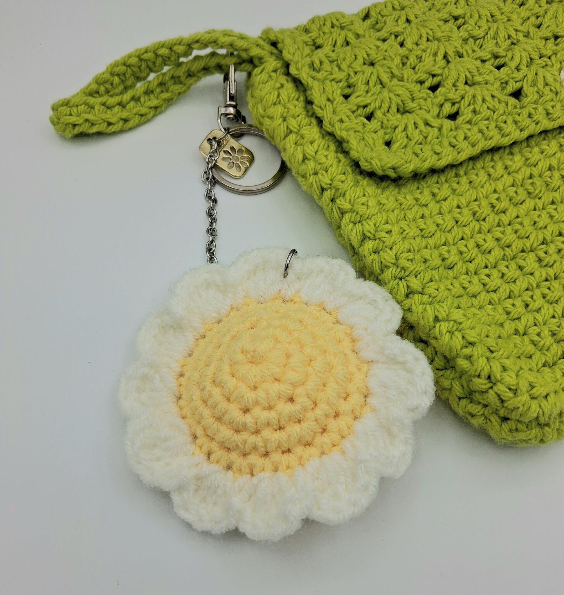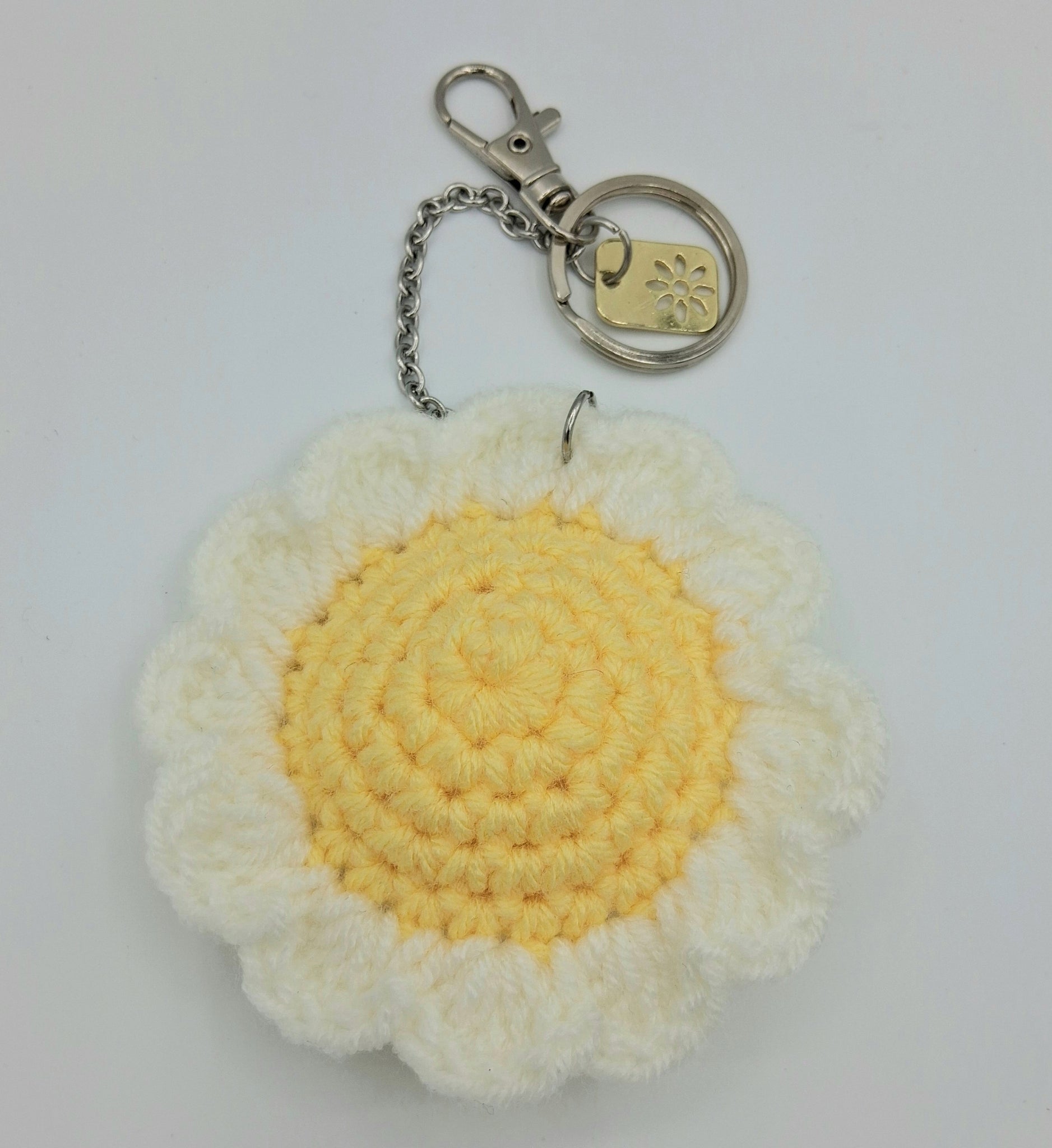 This handmade crochet flower keychain is the perfect accessory to add to your purse, tote bag, lap top bag or backpack. It’s made with acrylic yarn and has a stainless-steel key ring and lobster clasp so you can easily attach it to your bag. It’s light weight and you’ll be able to easily find your keys. You'll stand out in the crowd with this decorative bag accessory.