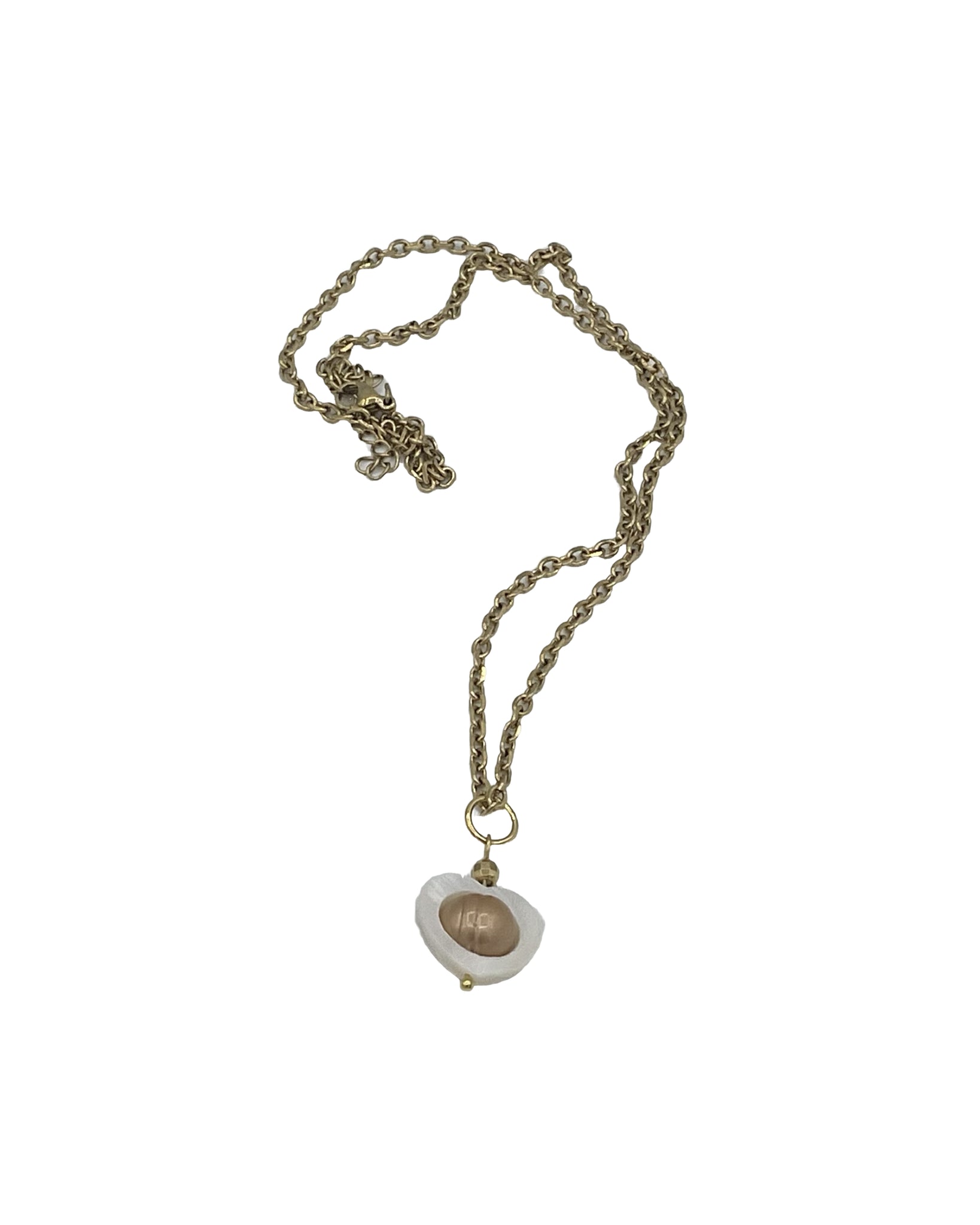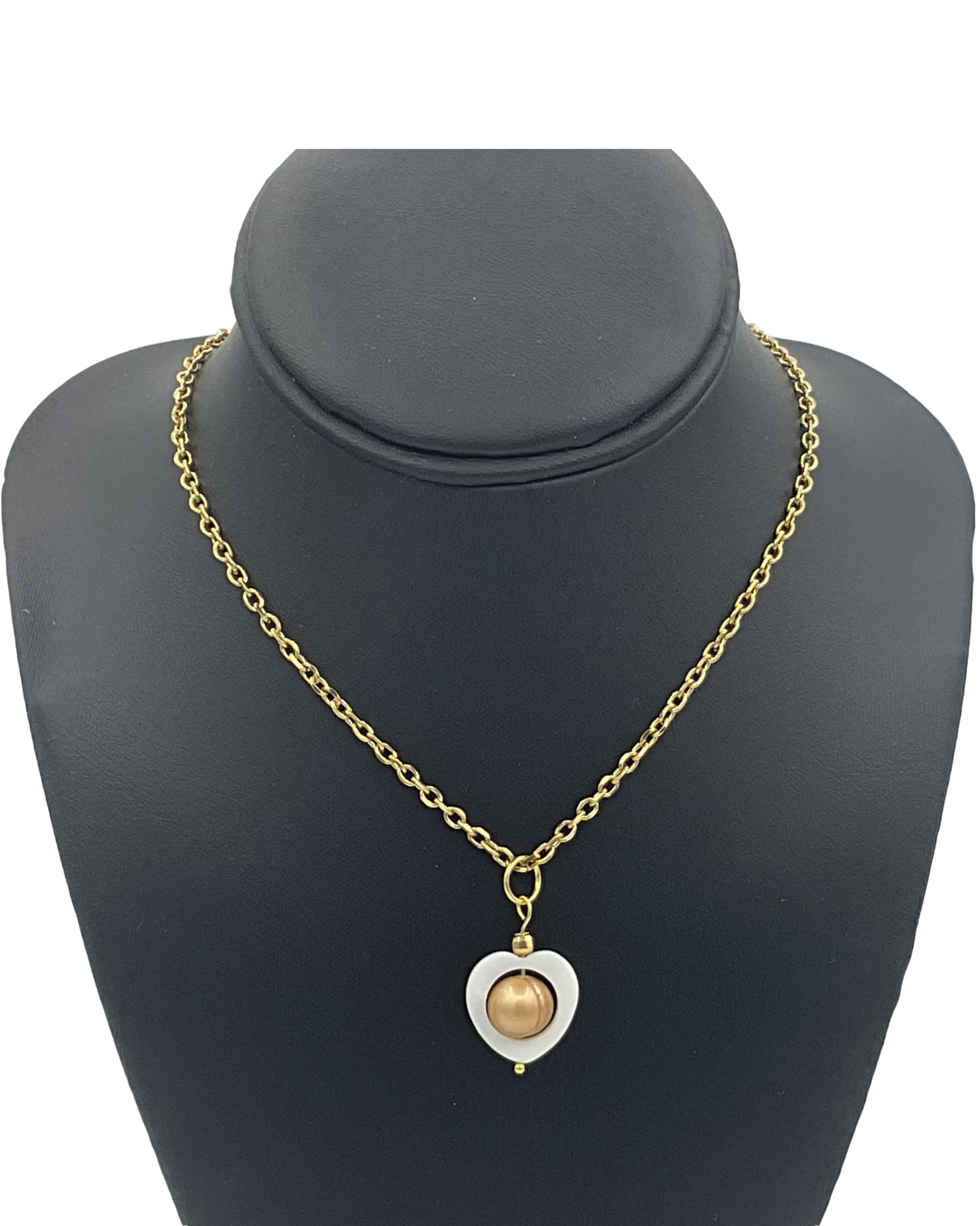 - Handmade Necklace with a Fresh Water Pearl, Heart Shape Mother of Pearl Frame, 18k Gold over Stainless Steel Chain, Lobster Clasp