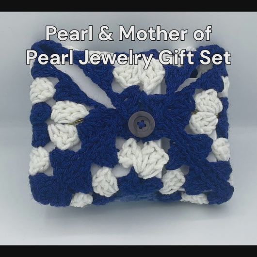 The necklace and earrings come in a separate gift box with a gold gift tie. In addition, the gift boxes are enclosed in a handmade granny square gift pouch. This gift set comes to you ready to present!