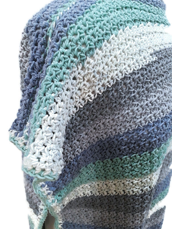 - Poncho Color: Stripes of Blue, Green, Gray and White