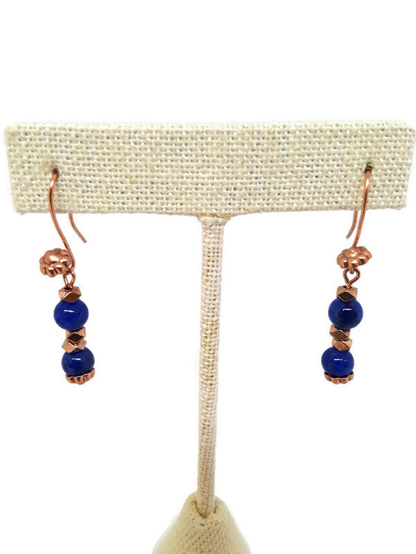 These beautiful and chic Calcite Bead Earrings are just right to add to your wardrobe. They're handmade with Sapphire Blue Color Calcite Gemstone Beads and accented with Rose Gold Tone Spacer Beads.
